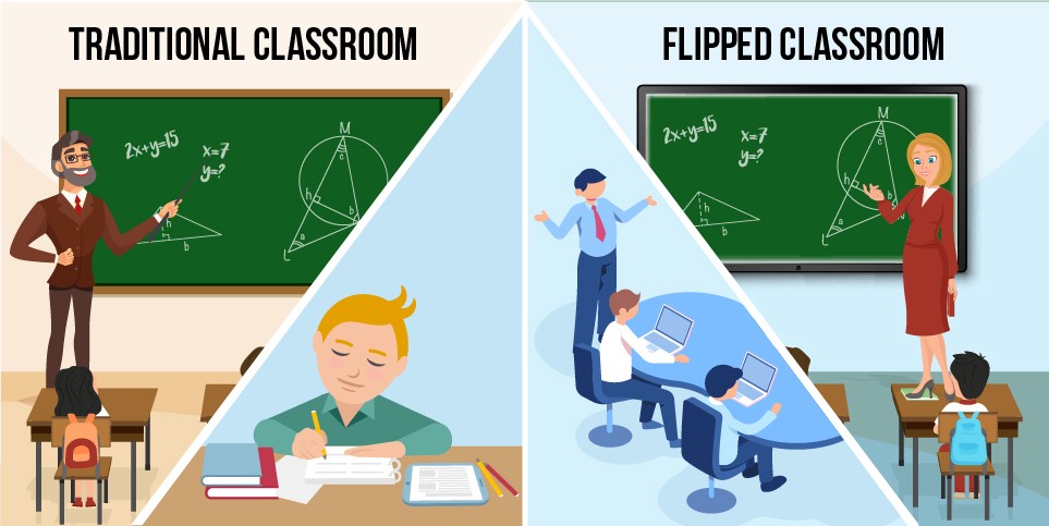 Öğrencilerin ders ortamında hazırbulunuşluk ve ön bilgilerinin eşit olmasını sağlamak amacıyla sınıf dışı ortamda gerçekleştirilen öğrenme ile ilgili dosya, doküman, konu ile ilgili bütün içerikler öğrencilere önceden ulaştırılır. Böylece öğrencinin derse, konuya hâkim olarak gelmesi amaçlanır. Örgün ortamda ise kazanımla ilgili üst düzey etkinlik ve uygulamalar yapılır. Görüldüğü üzere Bloom taksonomisi piramidi de ters yüz öğrenmede tersine dönmüş durumdadır.